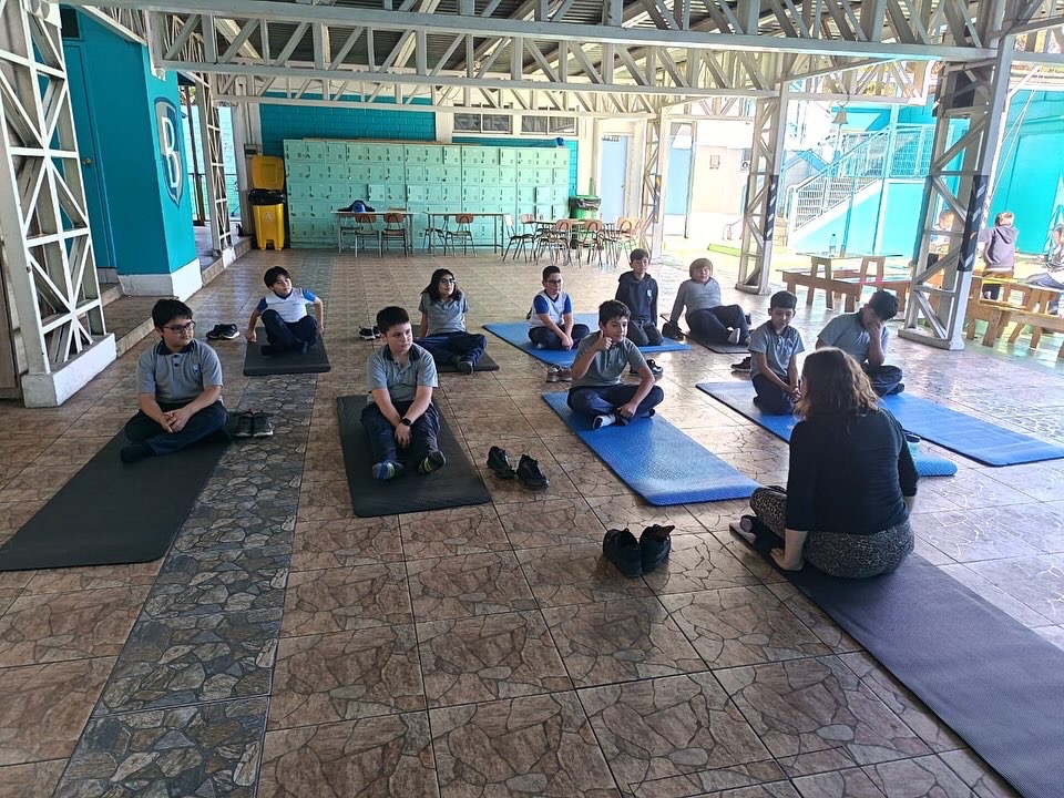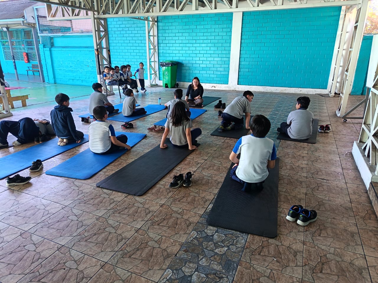 • Respiración de la montaña: manos en el pecho, inhalar profundo imaginando que crecen como una montaña fuerte, exhalar bajando los brazos suavemente. Repetir 3 veces.